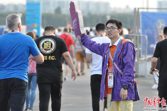 “大家預測可能會輸,怕球迷鬧事,所以我們躲在鐵柵欄后,最好的情況就是待在警察身邊?!毙扈χ袊嗄陥蟆ぶ星嘣诰€記者回憶。這場生死戰(zhàn)在盧日尼基體育場舉行,賽前已經(jīng)下了幾場急雨。作為體育場外進行觀眾引導的志愿者,徐琛和同伴要帶著巨大的海綿手套和觀眾擊掌,給觀眾指路,“天熱的時候悶得慌,下雨就能重兩斤,一擊掌濺一臉水。”