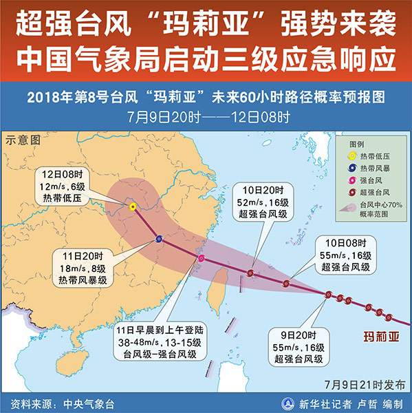新華社北京7月9日電(記者劉詩平)面對超強臺風“瑪莉亞”強勢來襲,中央氣象臺9日10時發(fā)布臺風黃色預警,中國氣象局啟動重大氣象災害(臺風)三級應急響應。福建、浙江、江西、湖南及可能受影響的省級氣象局根據(jù)實際研判進入應急響應狀態(tài)。
