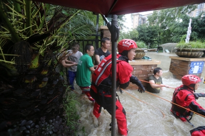 由于衣服褲子全部濕透,幾人不時打著哆嗦,瑟瑟發(fā)抖。但一旦有被困者需要救援,幾人就握緊繩子,喊著口號,用力地拉繩子。他們在現(xiàn)場堅守了一個多小時,共救出10余名被困者。之后,直到把在另一側(cè)的消防員一一拉過來后才離開現(xiàn)場。