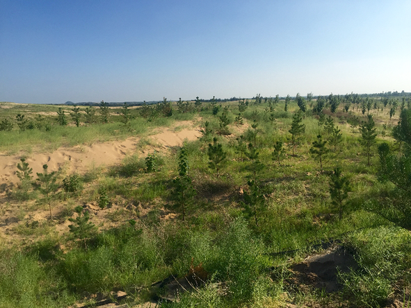 現(xiàn)在正處三北工程第五期階段,王海英說(shuō),當(dāng)下科左后旗所剩余的沙地造林地段,地理位置偏遠(yuǎn),相比以前來(lái)說(shuō),難度加大。一是交通不方便,以前可以機(jī)器造林,現(xiàn)在只能人工用車(chē)子拉進(jìn)沙地。二是以前可以裸栽,現(xiàn)在需帶土容器苗栽培,為了保護(hù)好樹(shù)根不折斷。三是澆水困難。造林當(dāng)年需在每三四百畝地之間打一口4—6寸口徑、深二十米左右的井,第二年以后就基本可以依靠雨水了。