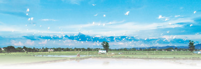 7月8日,安徽省廬江縣泥河鎮(zhèn)境內(nèi)的國家級(jí)稻漁共養(yǎng)示范區(qū)內(nèi),白鷺在藍(lán)天下飛翔。左學(xué)長(zhǎng)攝(人民視覺)
