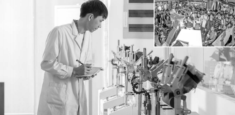 大圖:安踏投資建設(shè)的國家級運動科學(xué)實驗室。小圖:安踏旗下首款全球限量籃球鞋——— KT3 Rocco 引發(fā)排隊搶購的場面。圖片由受訪者提供