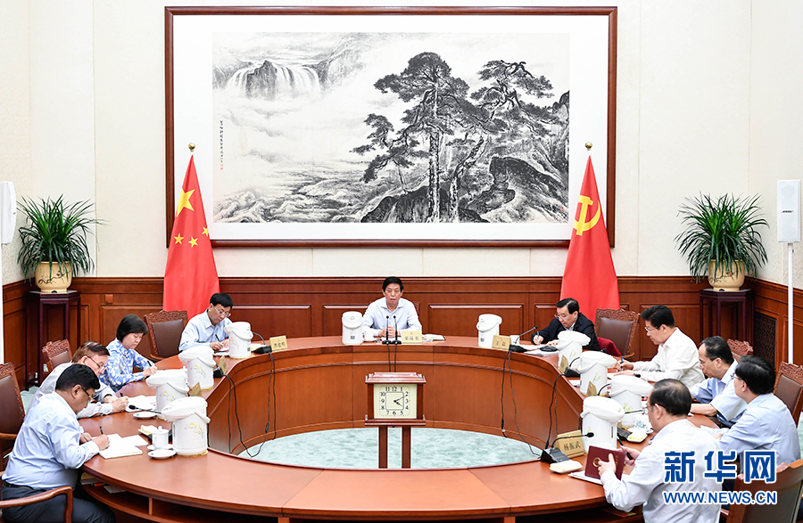 7月16日,全國人大常委會黨組在北京召開會議進行集體學習,學習習近平新時代中國特色社會主義思想,以“中國共產(chǎn)黨的歷史使命”為主題,圍繞“歷史使命、歷史責任和我們的歷史擔當”進行專題討論。全國人大常委會委員長、黨組書記栗戰(zhàn)書主持并講話。 新華社記者 殷博古 攝