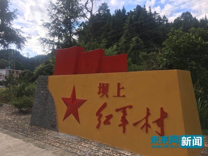 經(jīng)過(guò)顛簸的盤山水泥公路,走進(jìn)群山環(huán)繞的茅坪鄉(xiāng)壩上村,小橋流水、田野房屋相間,紅瓦白墻上的8幅手繪圖生動(dòng)展現(xiàn)著紅軍故事,道路兩邊插滿了紅旗,成片的荷花在荷塘綻放,溪水之上,小橋與石墻之間,農(nóng)戶用鐵絲拉網(wǎng),種起了野生獼猴桃和絲瓜。這里每天都有很多游客過(guò)來(lái)體驗(yàn)紅軍生活,聆聽(tīng)紅軍故事、做紅軍飯、走紅軍路,因此壩上村又叫紅軍村。