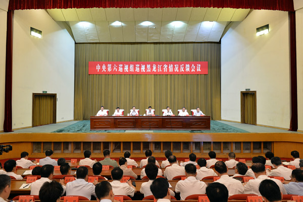 圖為中央巡視工作領(lǐng)導(dǎo)小組成員楊曉超主持召開向黑龍江省委書記張慶偉的反饋會議,出席巡視黑龍江省情況反饋會議,對抓好巡視整改工作提出要求。