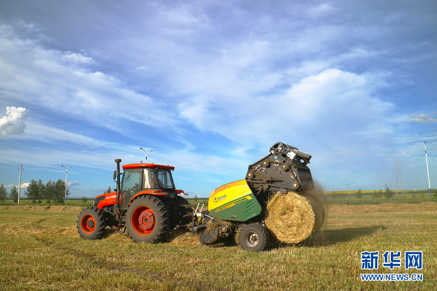 內(nèi)蒙古呼倫貝爾農(nóng)墾集團施業(yè)區(qū)面積約3萬平方公里,有耕地600萬畝,草場1000萬畝。集團下轄海拉爾、大興安嶺兩大農(nóng)墾集團和7個專業(yè)公司,有24個現(xiàn)代化農(nóng)牧場。自1954年開發(fā)建設以來,墾區(qū)實行半軍事化管理,80%以上耕地集中統(tǒng)一耕種,采用先進的大型農(nóng)機設備,田間綜合機械化水平達99%,農(nóng)業(yè)科技貢獻率達到72%。圖為7月21日,一輛捆草機正在內(nèi)蒙古呼倫貝爾市謝爾塔拉農(nóng)場進行捆草作業(yè)。(新華網(wǎng) 汪亞/攝)
