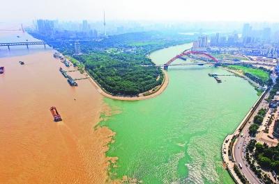 長江水利委員會工作人員解釋稱,兩江交匯處分界明顯的情況在每年漲水期都會出現(xiàn)。漢江所含泥沙量較長江少;在漲水期特別是雨季,長江水位提高使得水中的含沙量增加,江水因此呈濁黃色;而漢江江水相比之下則呈碧綠色,因此形成了明顯分界。記者戴旻陽 李子云 攝影報道
