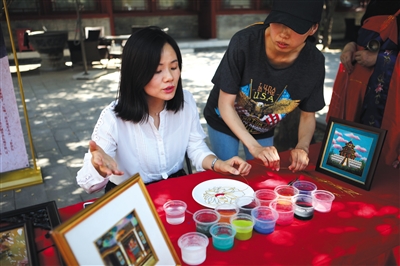 今年6月29日,西城區(qū)非物質(zhì)文化遺產(chǎn)保護(hù)中心,非遺傳承志愿者為市民介紹彩砂工藝。當(dāng)天,西城區(qū)啟動(dòng)非遺項(xiàng)目傳承志愿者招募活動(dòng)。活動(dòng)共設(shè)5個(gè)項(xiàng)目,包括木板年畫、京作核雕等。資料圖片/新京報(bào)記者 王嘉寧 實(shí)習(xí)生 梁思成 攝