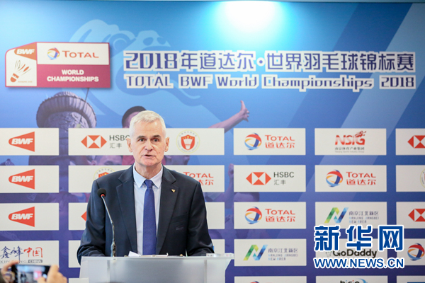 7月17日,國際羽聯(lián)首席運(yùn)營官斯圖爾特·博里在抽簽儀式上講話。 當(dāng)日,2018年羽毛球世錦賽抽簽儀式在馬來西亞吉隆坡舉行。本屆羽毛球世錦賽將于7月30日到8月5日在中國南京舉行。 新華社記者朱煒攝