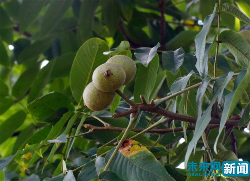 崇仁村長勢喜人的核桃樹已掛果。未來網(wǎng)記者 程婷 攝