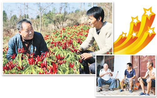 左上圖 張東堂(左)在貧困戶(hù)家的辣椒地里查看辣椒長(zhǎng)勢(shì)?!∮蚁聢D 張東堂(左一)來(lái)到貧困戶(hù)家中家訪(fǎng)。 經(jīng)濟(jì)日?qǐng)?bào)-中國(guó)經(jīng)濟(jì)網(wǎng)記者 郭靜原攝