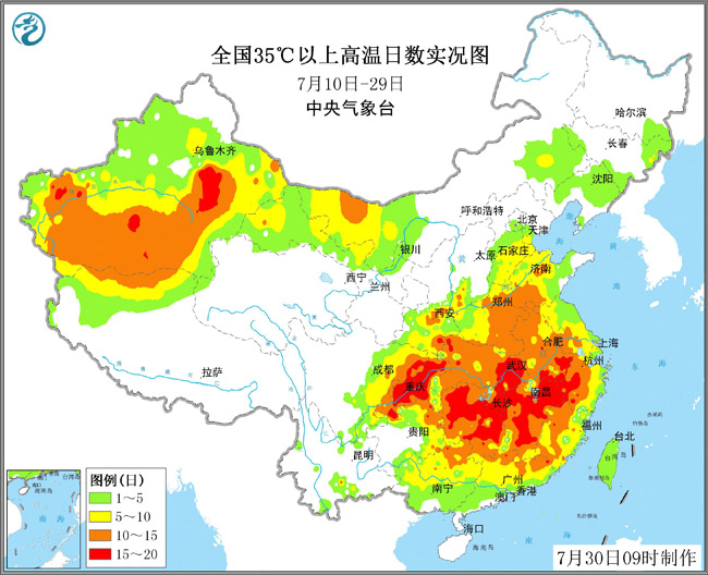 孫軍:7月10日以來,我國中東部地區(qū)出現(xiàn)大范圍持續(xù)性高溫天氣,四川盆地、江南、華南以及黃淮、江淮、江漢、華北東部和南部、東北南部均有影響。其中重慶、湖北、湖南、江西、安徽、浙江中西部等地35℃以上高溫日數達10~18天。