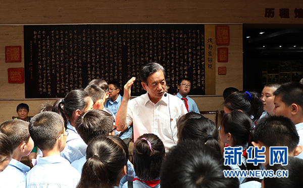 徐文濤為參觀的小學生講解黨史軍史(7月16日攝)。 新華社發(fā)(高磊攝)