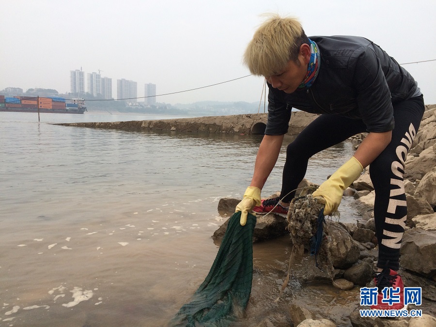 2016年12月3日,“三峽蟻工”組織發(fā)起人李年邦在江灘邊撿垃圾。2016年10月,在李年邦的發(fā)起下,“三峽蟻工”志愿者組織正式成立,300多名固定成員成為長江垃圾清理的主力軍,他們以“保護(hù)長江母親河”為口號(hào),每逢周末和法定節(jié)假日都會(huì)自發(fā)組織在長江岸邊撿拾垃圾。 新華社記者 王自宸 攝