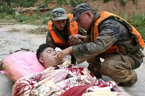 ?。?)2016年,“莫蘭蒂”臺(tái)風(fēng)后,官兵徒步深入災(zāi)區(qū),在半米深的泥石流和亂石堆中,抬著受傷人員與死神賽跑。一路八小時(shí),戰(zhàn)士們餓著肚子,把僅有的一瓶礦泉水留給了受傷群眾。有中國(guó)軍人的地方,就有依靠。