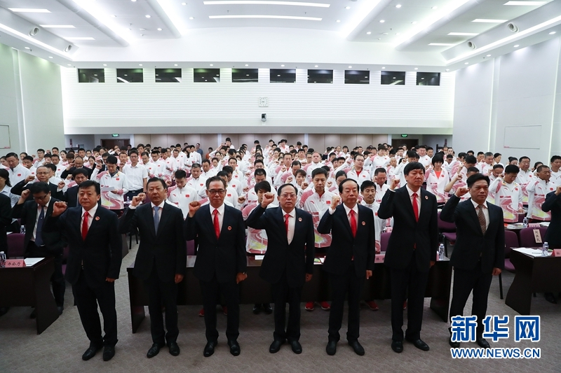 8月6日,代表團(tuán)成員在大會(huì)上宣誓。新華社記者 曹燦 攝