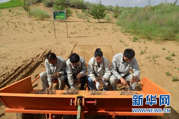張吉樹(shù)介紹說(shuō),甘草適合在沙漠里生長(zhǎng),固氮量大,改良沙土的效果很明顯,讓甘草躺著長(zhǎng),可將一棵甘草的治沙面積由0.1平方米擴(kuò)大到1平方米,這項(xiàng)技術(shù)已推廣到其他沙區(qū),治理面積達(dá)220萬(wàn)畝。