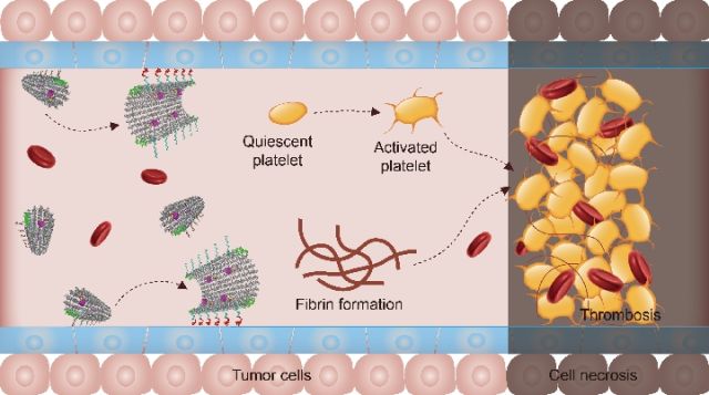 聶廣軍說(shuō),納米機(jī)器人被注射進(jìn)體內(nèi)后,只有腫瘤才具有能打開(kāi)“鎖”的“鑰匙”?!伴_(kāi)鎖”后,“殺手”凝血酶被釋放出來(lái),會(huì)召集來(lái)血小板、纖維蛋白原,幾個(gè)小時(shí)內(nèi)在腫瘤血管形成巨大血栓,切斷血液供應(yīng),從而“餓死”腫瘤。