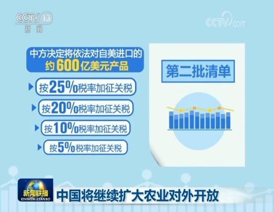 到目前為止,我國(guó)公布了兩批對(duì)自美進(jìn)口商品加征關(guān)稅清單。第一批清單,中方發(fā)布公告對(duì)美國(guó)500億美元商品加征25%的關(guān)稅,共涉及517項(xiàng)農(nóng)產(chǎn)品。第二批清單,中方?jīng)Q定將依法對(duì)自美進(jìn)口的約600億美元產(chǎn)品,按照25%、20%、10%、5%四檔不同稅率加征關(guān)稅,涉及387項(xiàng)農(nóng)產(chǎn)品。目前已對(duì)近九成自美進(jìn)口農(nóng)產(chǎn)品加稅。