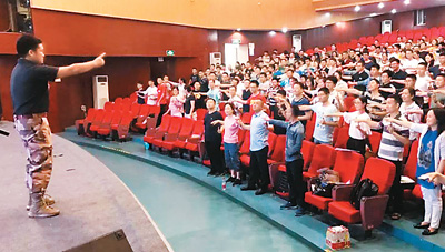 2018“平安留學(xué)”行前培訓(xùn)在貴州、成都等地舉行。圖為西南交通大學(xué)培訓(xùn)會(huì)現(xiàn)場,學(xué)生和教官在進(jìn)行互動(dòng)。出國留學(xué)行前培訓(xùn)微信公眾號供圖