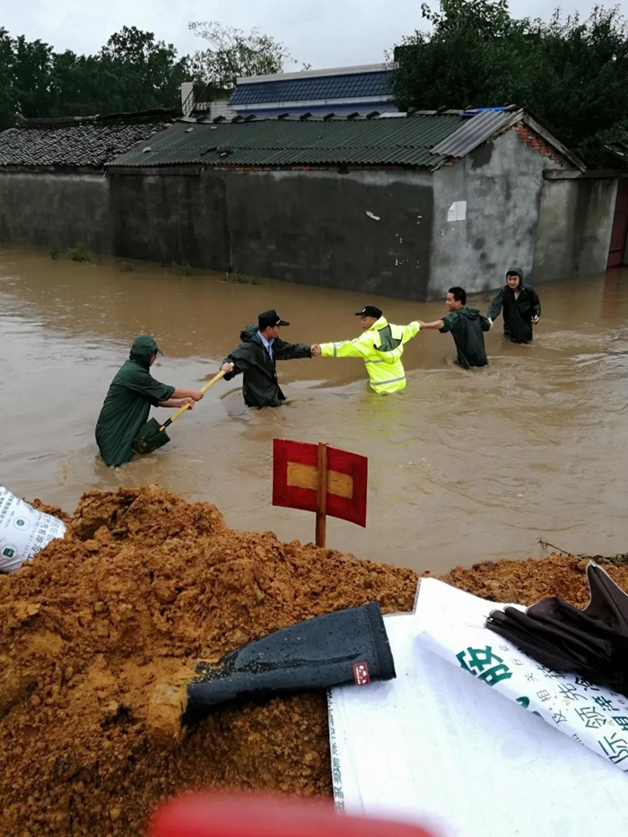 2018年7月2日,眉山市公安局園區(qū)分局象耳派出所民警在暴雨后搶險(xiǎn)疏散群眾。