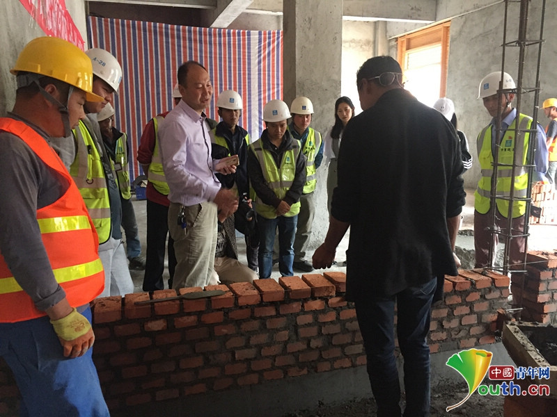 工程人員為當地剩余勞動力進行砂漿攪拌、焊接免費技能培訓。中建二局供圖