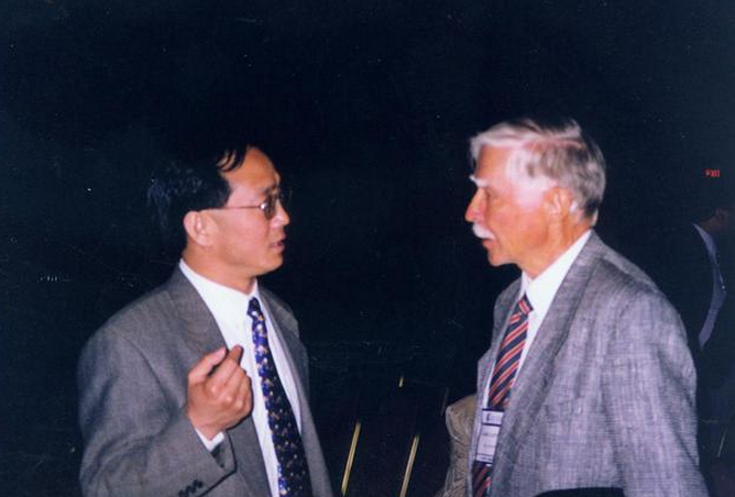 1999年,李勇杰與功能神經(jīng)外科先驅(qū)、瑞典醫(yī)生 LV Laitinen交流。