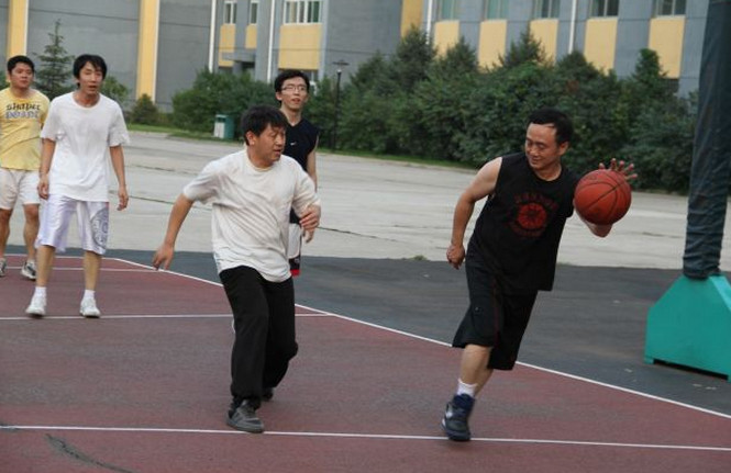 閑暇時(shí)光,李勇杰(右)喜歡打籃球。