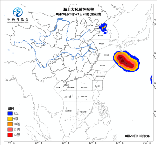 另外,受“溫比亞”變性為溫帶氣旋的影響,20日白天至夜間,渤海、渤海海峽、黃海北部海域、黃海中部偏西海域?qū)⒂?~10級、陣風(fēng)11~12級的大風(fēng),黃海中部偏東海域?qū)⒂?級、陣風(fēng)9~10級的偏南風(fēng)。
