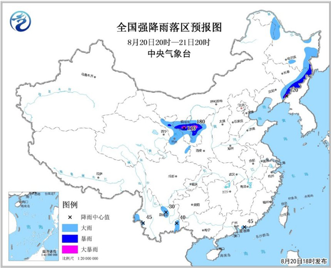 孫軍:西北地區(qū)由于受高空槽和低層切變影響,西北地區(qū)西側(cè)、北側(cè)冷空氣與南側(cè)的濕暖氣流交匯,形成西北渦旋。由于冷暖氣流兩者強度均較強,水汽輸送條件較好,預(yù)計8月20日夜間至21日夜間,西北地區(qū)中東部將有一次強降雨過程,其中甘肅中東部、寧夏、陜西、內(nèi)蒙古河套偏南部分地區(qū)有大雨或暴雨,局地有大暴雨。