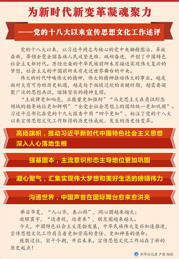 新華社北京8月20日電 題:為新時代新變革凝魂聚力——黨的十八大以來宣傳思想文化工作述評