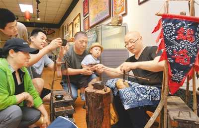 在遼寧省錦州市群眾藝術(shù)館非物質(zhì)文化遺產(chǎn)保護(hù)中心,鋦瓷傳承人姜波(右一)在為人們表演鋦瓷。李鐵成攝(人民視覺(jué))