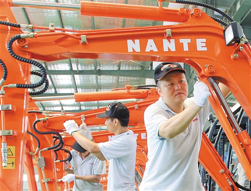 江西省高安高新技術(shù)產(chǎn)業(yè)園南特機(jī)械有限公司的“扶貧車間”里,員工在安裝設(shè)備。該市引導(dǎo)企業(yè)通過“企業(yè)+扶貧車間+貧困戶”的形式,帶動有勞動能力的貧困群眾脫貧致富。 彭松林 攝