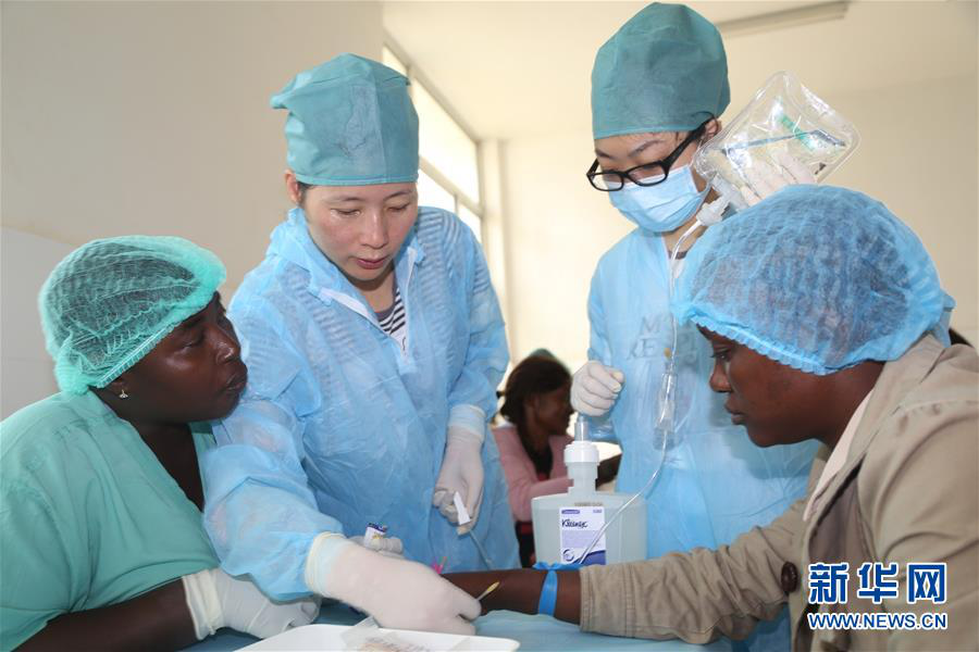 2014年12月10日,在塞拉利昂首都弗里敦,中國(guó)人民解放軍援助西非抗擊埃博拉疫情醫(yī)療隊(duì)為中塞友好醫(yī)院開展輸液培訓(xùn)活動(dòng)。? 新華社發(fā)(戴欣攝)