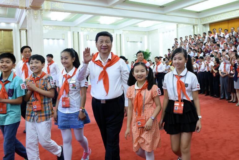 2015年6月1日,習(xí)近平在北京人民大會(huì)堂親切會(huì)見(jiàn)中國(guó)少年先鋒隊(duì)第七次全國(guó)代表大會(huì)全體代表。新華社記者王曄攝