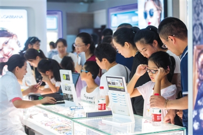 8月24日,太原市的山西省眼科醫(yī)院,暑假臨近尾聲,中小學(xué)生在家長的陪同下檢查視力,扎堆配眼鏡。圖/視覺中國