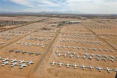 美國(guó)亞利桑那州的一片沙漠中,坐落著“航空航天維護(hù)與再生中心”。這里封存著美國(guó)大部分退役飛機(jī),被稱為“飛機(jī)墳場(chǎng)”。這些總價(jià)值達(dá)350億美元的退役報(bào)廢飛機(jī),幾乎涵蓋了二戰(zhàn)以后美軍所有軍用飛機(jī)機(jī)型。駐扎在那里的美軍,每天都會(huì)對(duì)封存的飛機(jī)進(jìn)行維護(hù),時(shí)刻準(zhǔn)備讓其中一些重返藍(lán)天。