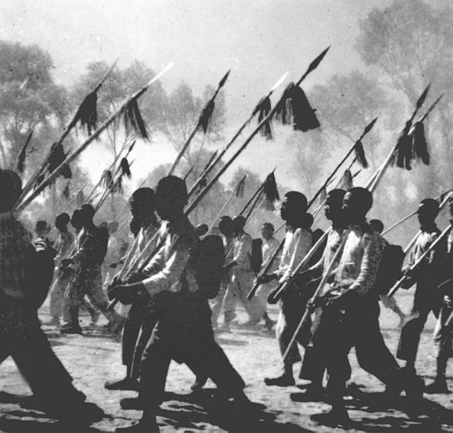 晉察冀抗日根據(jù)地民兵在進(jìn)行軍事訓(xùn)練
