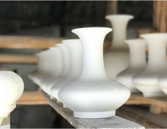 省級非物質(zhì)文化遺產(chǎn)傳承人袁寧霞在陶瓷坯體上描繪紋飾
