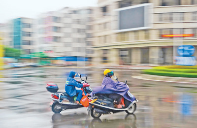 13日,廣東湛江廉江市,市民冒雨出行。羅暢 攝(人民視覺)