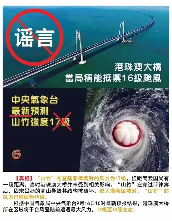 謠言:中央氣象臺最新預(yù)測臺風“山竹”強度為17級!