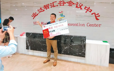 雖然大家都表示參加大賽的目的是“重在參與”,但現(xiàn)場(chǎng)的獲獎(jiǎng)?wù)呷砸种撇蛔?nèi)心的激動(dòng),在場(chǎng)地外拍照,把照片傳播給大家分享。