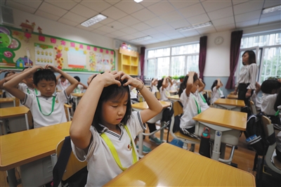 9月19日,朝陽區(qū)實驗小學(xué)(三里屯幸福校區(qū)北區(qū)),學(xué)生們正在做新眼保健操。 新京報記者 王飛 攝