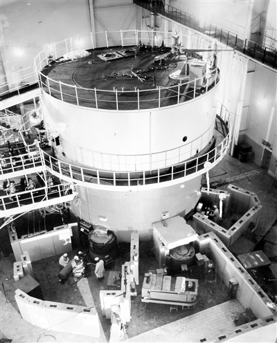 在第一顆原子彈研制方面,重水堆提供了裝料和裝料的關(guān)鍵數(shù)據(jù),研制了點(diǎn)火中子源,突破了钚生產(chǎn)堆燃料組件等關(guān)鍵技術(shù)。在第一顆氫彈研制方面,“一堆一器”完成了為氫彈技術(shù)路線選擇起到“定向”作用的輕核反應(yīng)關(guān)鍵數(shù)據(jù)研究,為攻克氫彈材料氚的生產(chǎn)工藝提供了重要依據(jù)。