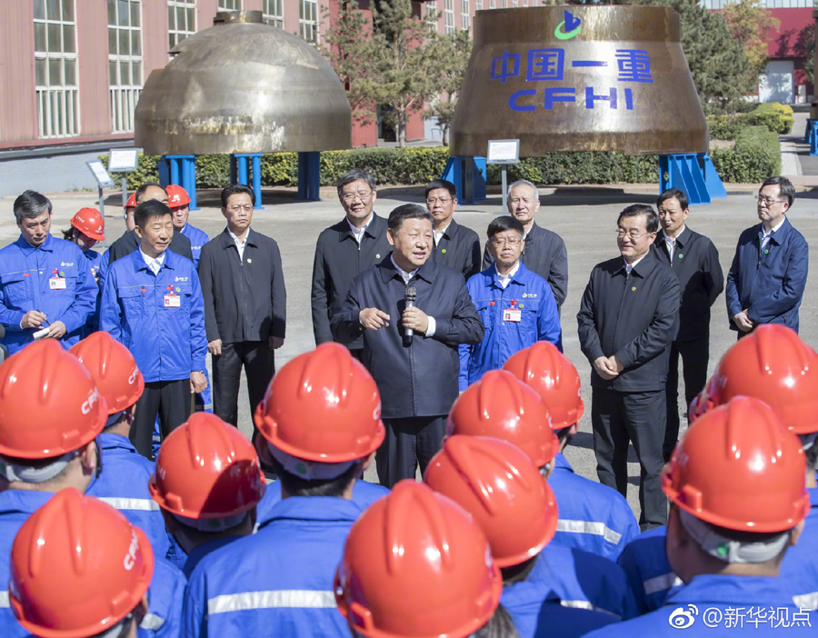 26日上午,正在黑龍江齊齊哈爾考察的習(xí)近平總書記來到中國一重集團,走進軋電制造廠車間、水壓鍛造車間,察看企業(yè)生產(chǎn)情況。習(xí)近平說,中國是有著近14億人口、960萬平方公里土地的大國,糧食要靠自己,實體經(jīng)濟要靠自己,制造業(yè)要靠自己。行百里路半九十,我們實現(xiàn)“兩個一百年”目標,沒任何時期比現(xiàn)在更接近,也沒有任何時期遇到現(xiàn)在這么多的挑戰(zhàn)和困難。國際上,先進技術(shù)、關(guān)鍵技術(shù)越來越難以獲得,單邊主義、貿(mào)易保護主義上升,逼著我們走自力更生的道路,這不是壞事,中國最終還是要靠自己。他勉勵大家,要肩負起歷史重任,制訂好發(fā)展路線圖,加強黨的領(lǐng)導(dǎo)、班子建設(shè),提高管理水平,調(diào)動各類人才創(chuàng)新創(chuàng)業(yè)積極性,把我們的事業(yè)越辦越好。(文字記者張曉松,攝影記者鞠鵬、王曄、燕雁)?