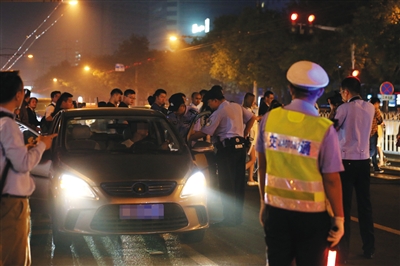 9月14日晚11時(shí)許,工體北路,一男子涉嫌非法營(yíng)運(yùn)被強(qiáng)制傳喚。資料圖片/新京報(bào)記者 王貴彬 攝