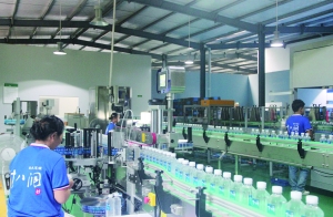 一棟碧綠色的廠房首先映入記者眼簾。走進(jìn)廠房,十幾名工人正在全自動(dòng)化的生產(chǎn)線前忙碌著。來(lái)自十八洞村的山泉水經(jīng)過(guò)水管輸送到這兒,經(jīng)過(guò)十幾道設(shè)備,進(jìn)行專業(yè)沉淀、過(guò)濾、消毒、殺菌等處理后,一瓶瓶帶著山里冰涼氣息的礦泉水就在這里下線。