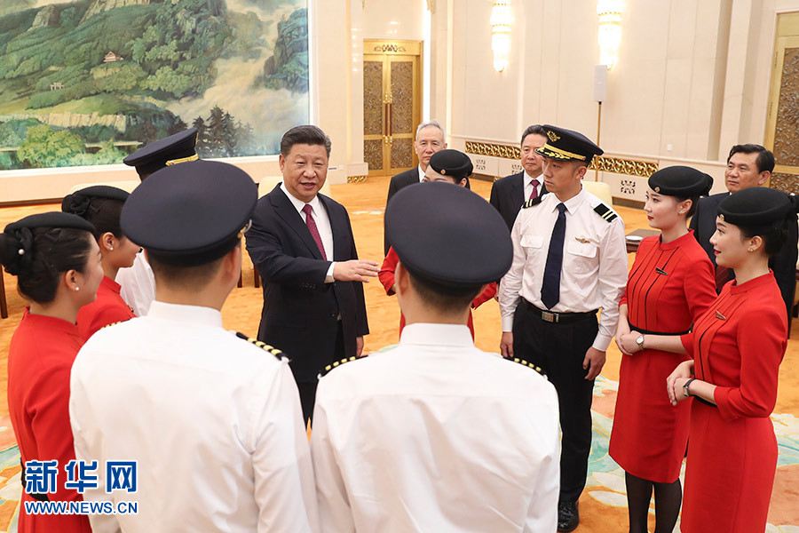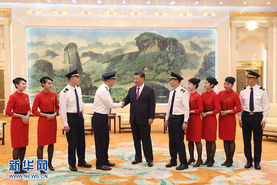 習(xí)近平在會見四川航空“中國民航英雄機(jī)組”全體成員時強(qiáng)調(diào)
