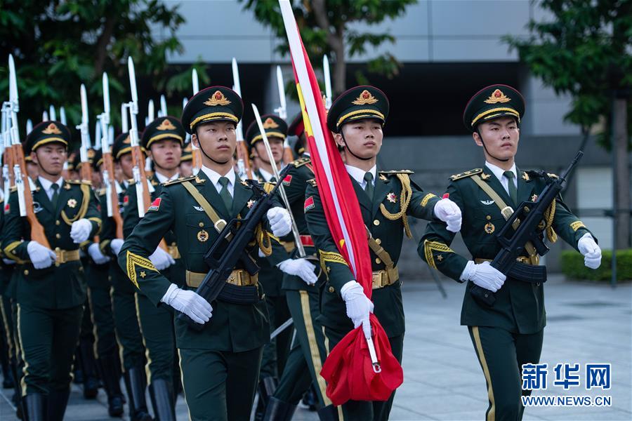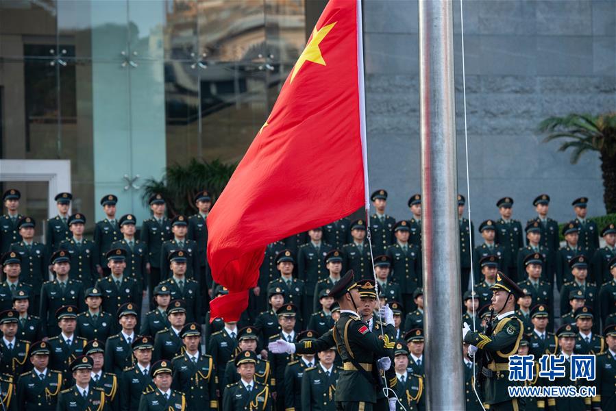 10月1日,中國人民解放軍駐澳門部隊(duì)在新口岸營區(qū)舉行升國旗儀式,慶祝中華人民共和國成立69周年。 新華社記者 張金加 攝