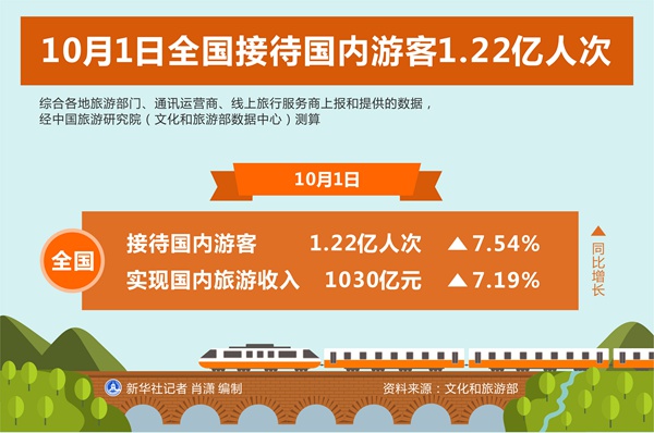圖表:10月1日全國接待國內(nèi)游客1.22億人次 新華社記者 肖瀟 編制